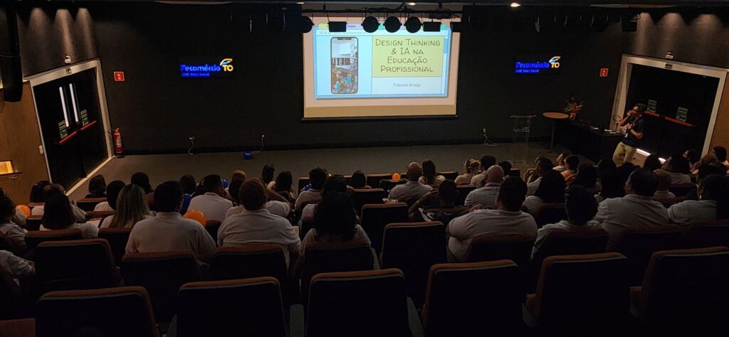 A programação contou com a participação do Departamento Nacional, que conduziu uma oficina sobre Design Thinking e Inteligência Artificial aplicada à educação, mediada pelo assessor técnico Fabiano Araújo, da Gerência de Tecnologias e Desenhos Educacionais da Diretoria de Educação Profissional.