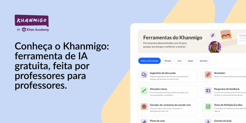 A Khan Academy disponibilizou as ferramentas de Inteligência Artificial do Khanmigo gratuitamente para docentes via parceria com a Microsoft. São 25 assistentes que para auxiliar na Educação, desde até um gerador de rubricas e Planos de Ensino Individualizados (PEI). Confira a apresentação do Khanmigo feita pelo diretor da Khan Academy, Sidnei Shibata, para o GT nacional de Tecnologias Educacionais do Senac: